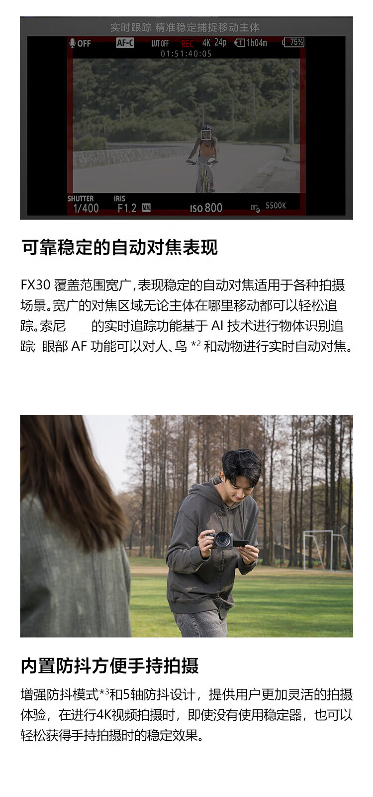 • 商品名稱:索尼(SONY)FX30 緊湊型4K Super 35mm 電影攝影機(含鏡頭*1、儲存卡*3、電池*2、麥克風(fēng)*1、云臺*1)