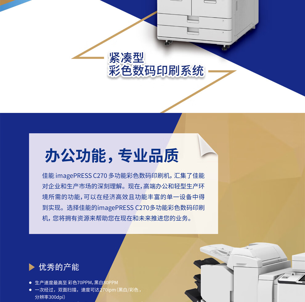 • 商品名稱:佳能(Canon)C270 彩色復(fù)合機(jī) 主機(jī)+鞍式分頁裝訂處理器AC2