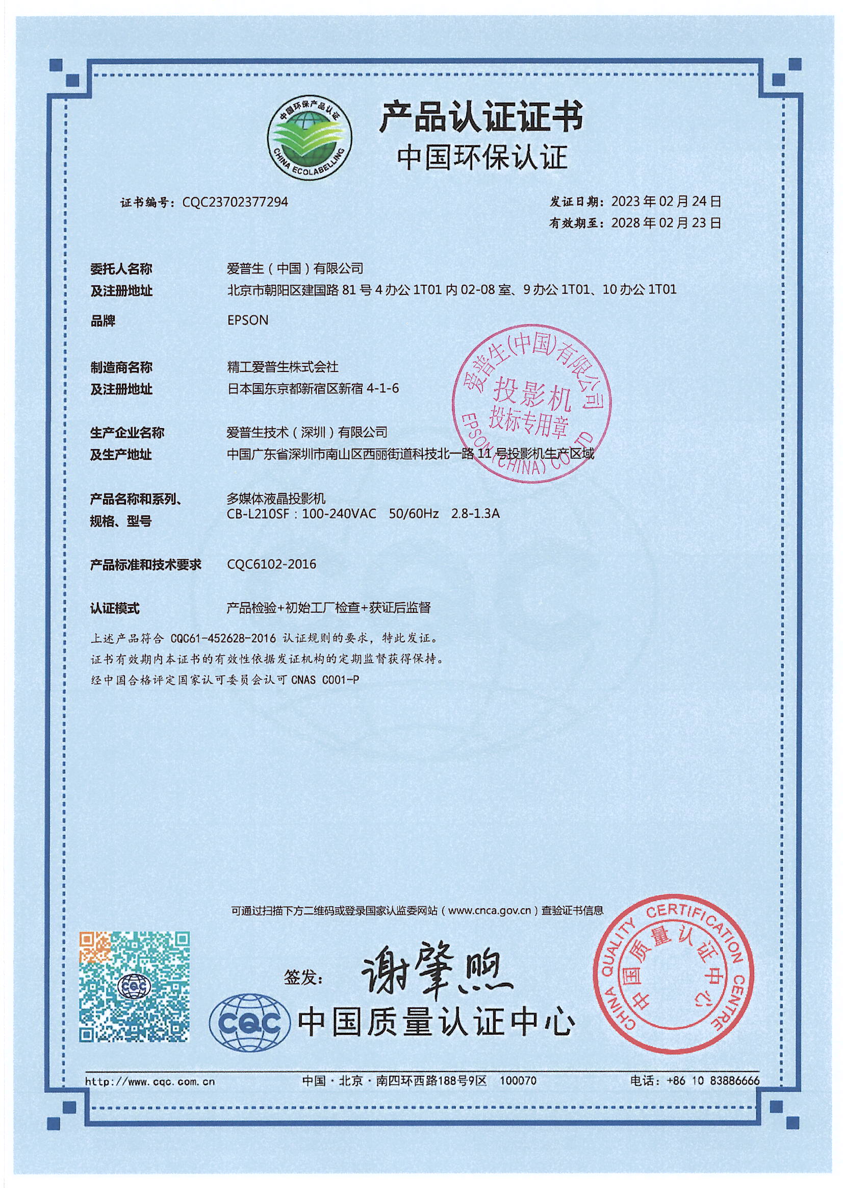 • 環(huán)境標(biāo)志證書編號:CQC23702377294