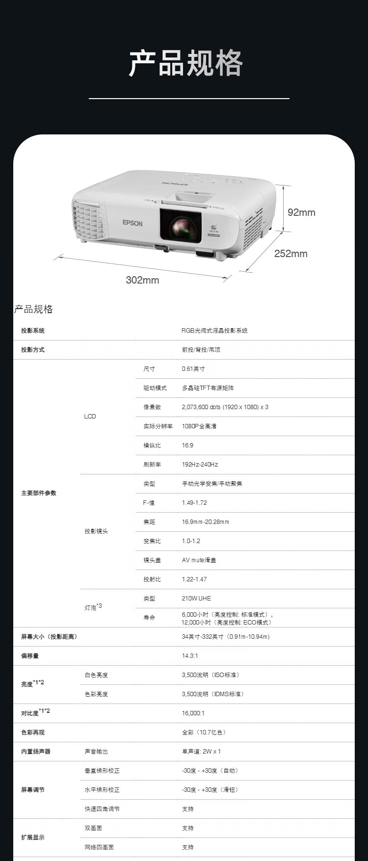 • 商品名稱:愛普生 CB-FH06 投影儀