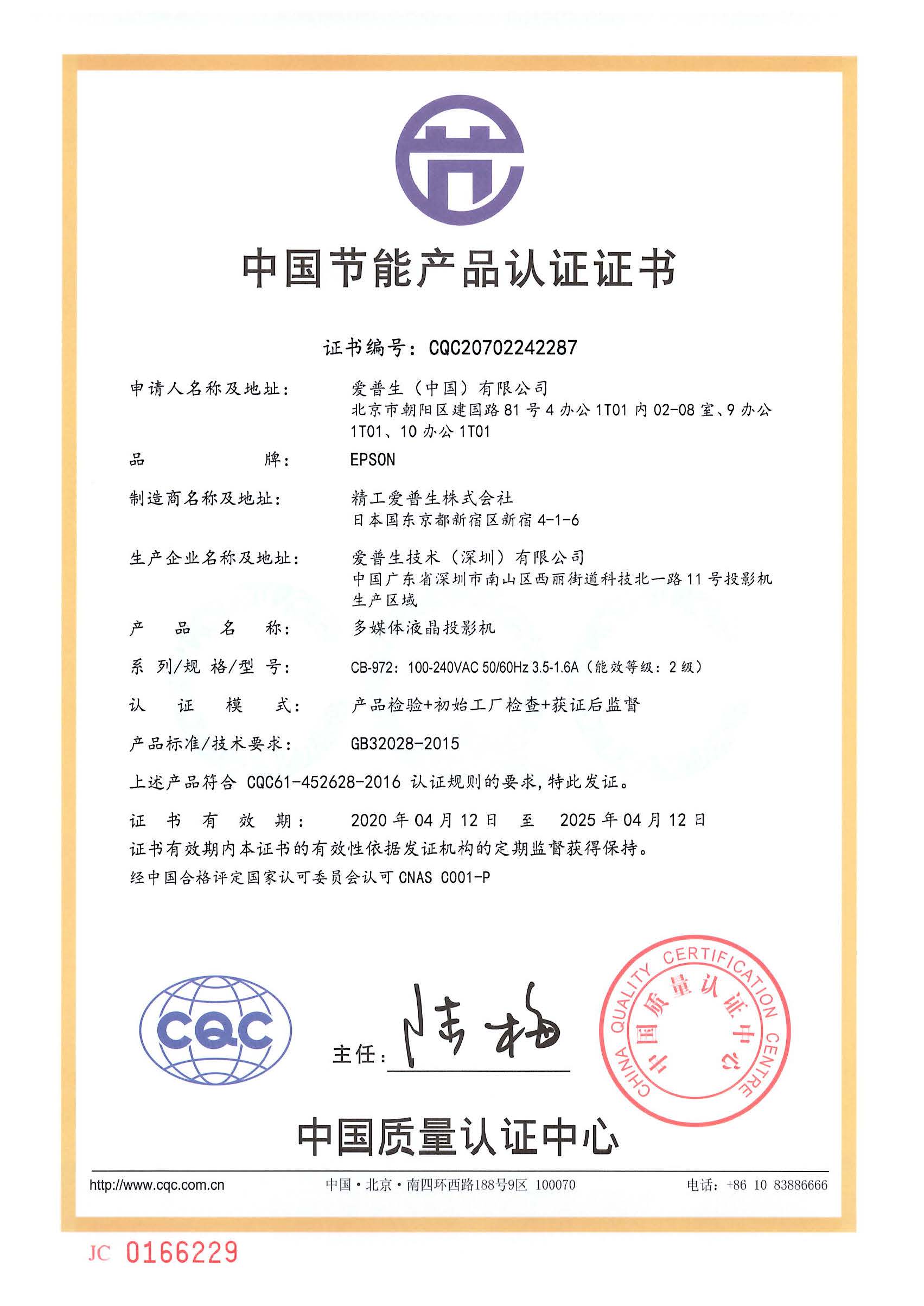 • 節(jié)能證書編號:CQC20702242287