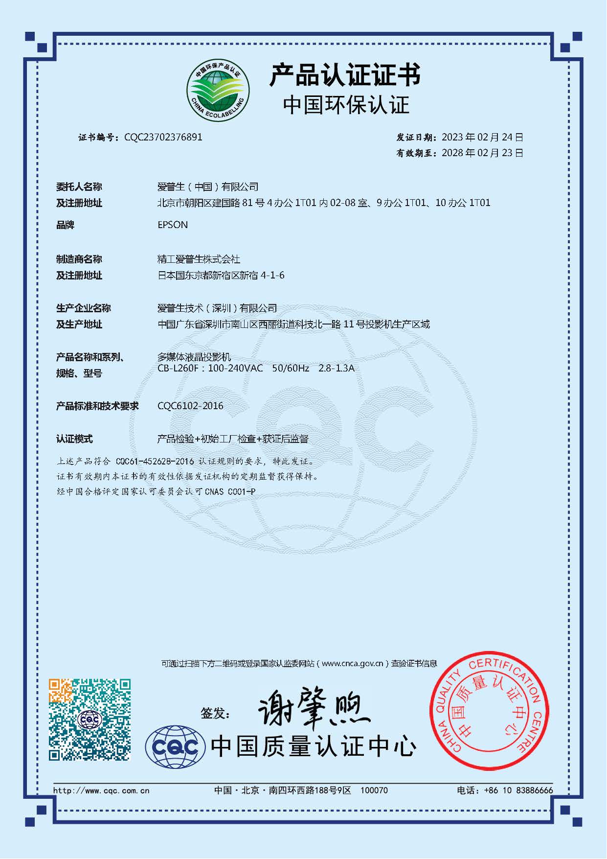 • 環(huán)境標(biāo)志證書編號:CQC23702376891