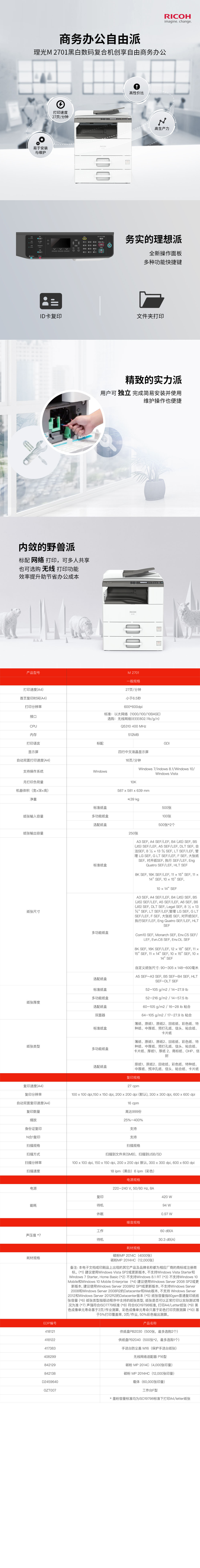 - 商品名稱:理光M2701 A3黑白 27頁/分鐘 數(shù)碼復(fù)合機(jī)(主機(jī)+自動(dòng)雙面送稿器+兩紙盒+網(wǎng)絡(luò)打印掃描+工作臺(tái)+3年質(zhì)保) 單位:臺(tái)