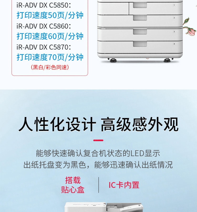 • 商品名稱:佳能(Canon)iR ADV DX C5850 A3彩色數(shù)碼復合機含工作臺+內置裝訂(雙面打印復印掃描無線)