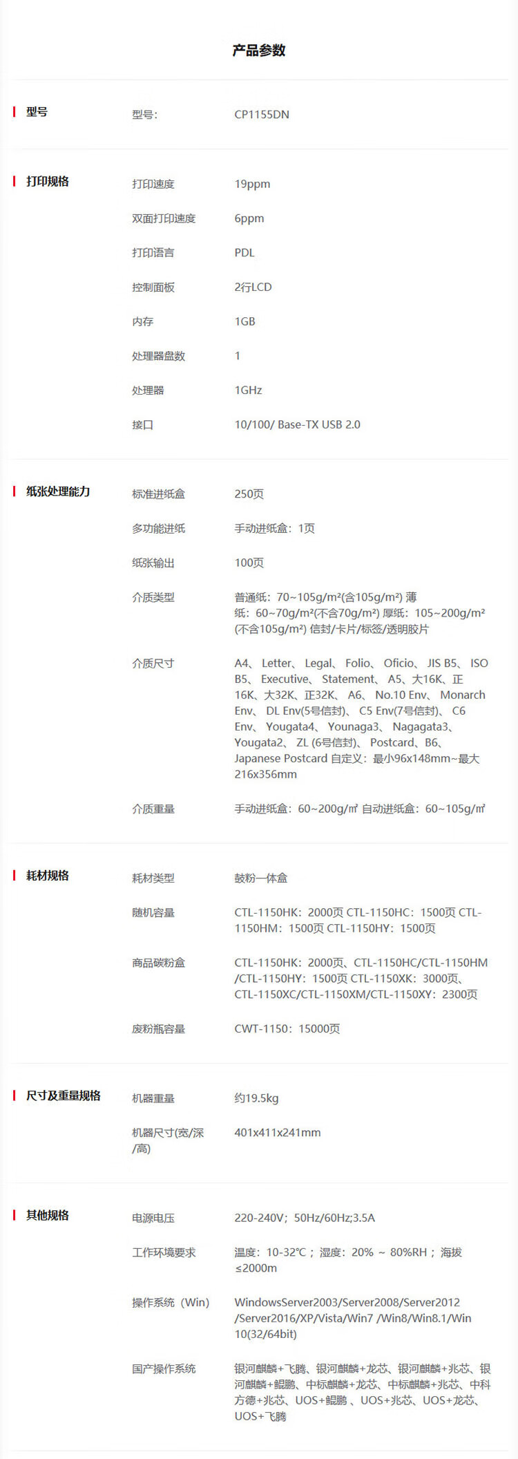 • 商品名稱:奔圖(PANTUM)CP1155DN A4彩色激光單功能打印機 自動雙面打印 支持無線打印