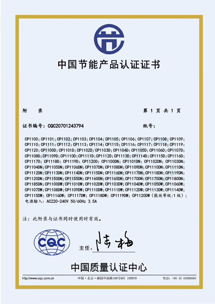 • 節(jié)能產(chǎn)品證書編號:CQC20701243794