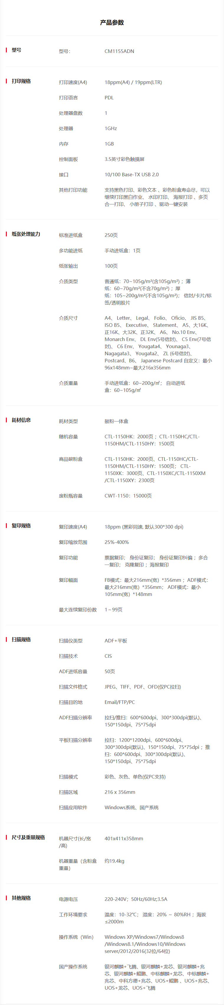 • 商品名稱:奔圖 CM1155ADN A4彩色激光多功能一體機 打印/復(fù)印/掃描