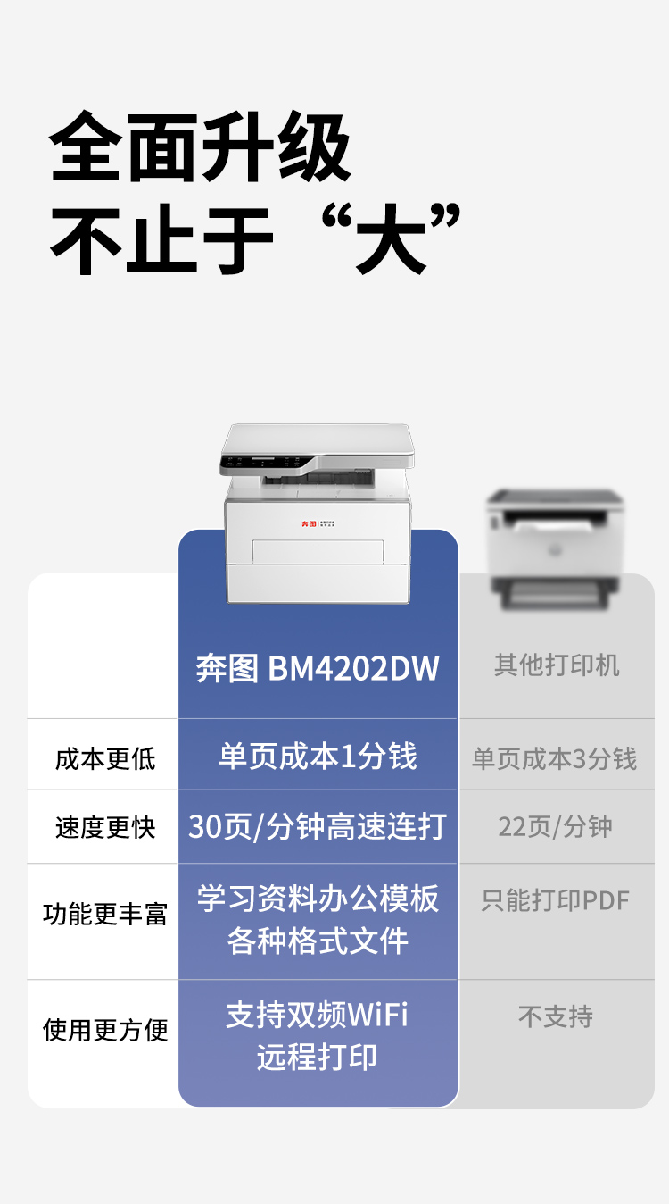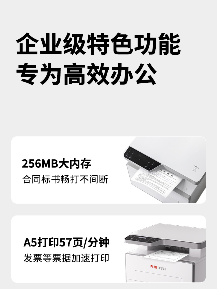 • 商品名稱:奔圖(PANTUM)BM4202DW 扛打系列A4黑白多功能一體機(jī) 雙面打印/無(wú)線WiFi