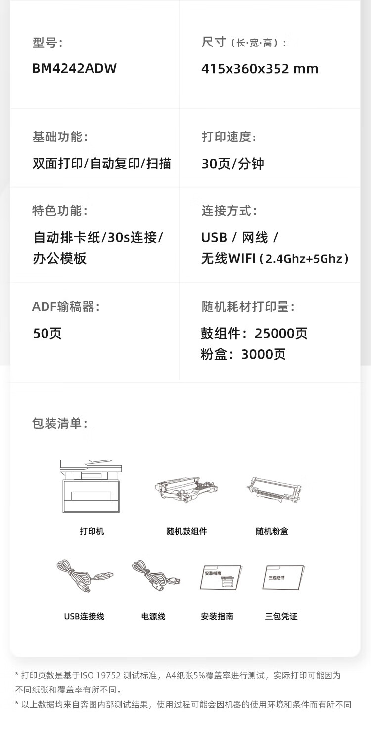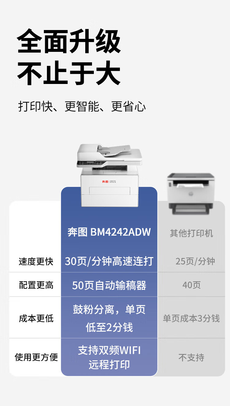 • 商品名稱:奔圖(PANTUM)BM4242ADW 扛打系列A4黑白多功能一體機(jī) 雙面打印/無(wú)線WiFi