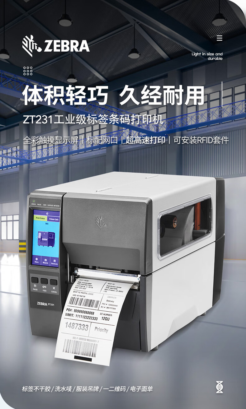 斑馬(ZEBRA)ZT231 305mm/s 203dpi 工業(yè)級熱敏標簽條碼打印機