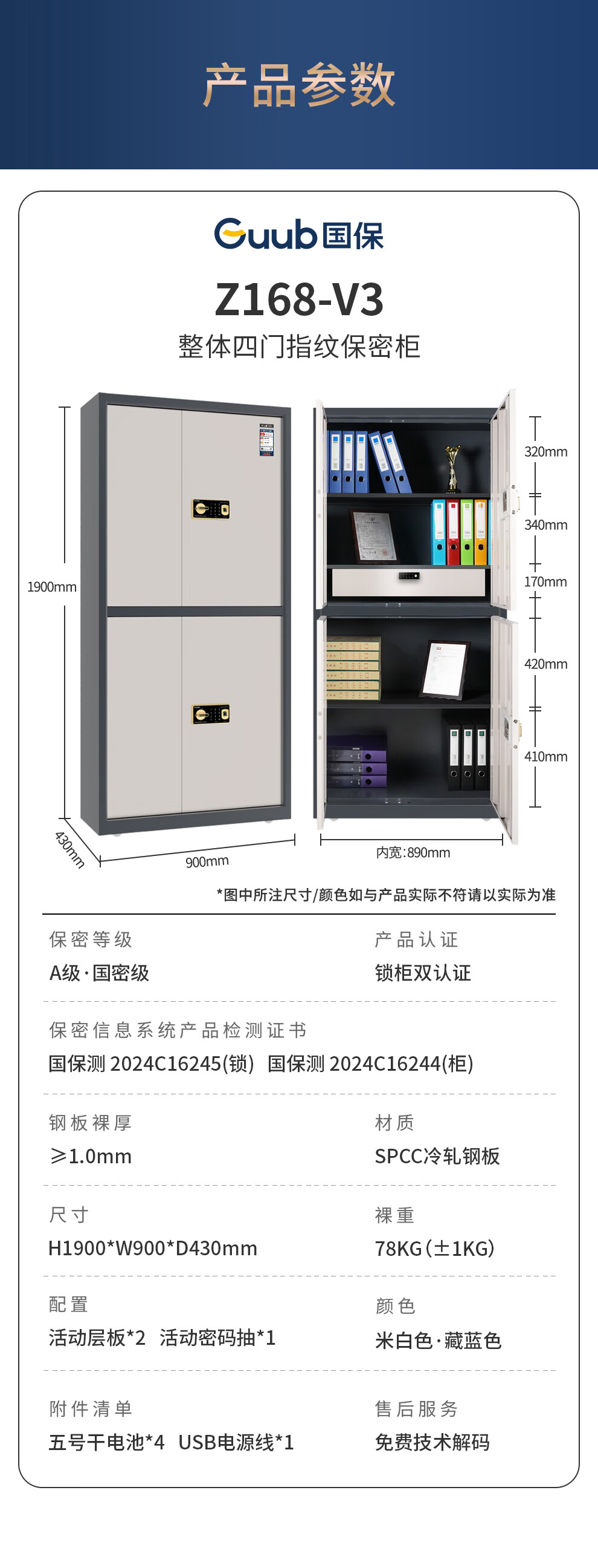 • 商品名稱:國保(Guub)Z168-V3 保密柜V3辦公文件柜國家認證指紋密碼文檔柜加厚員工柜