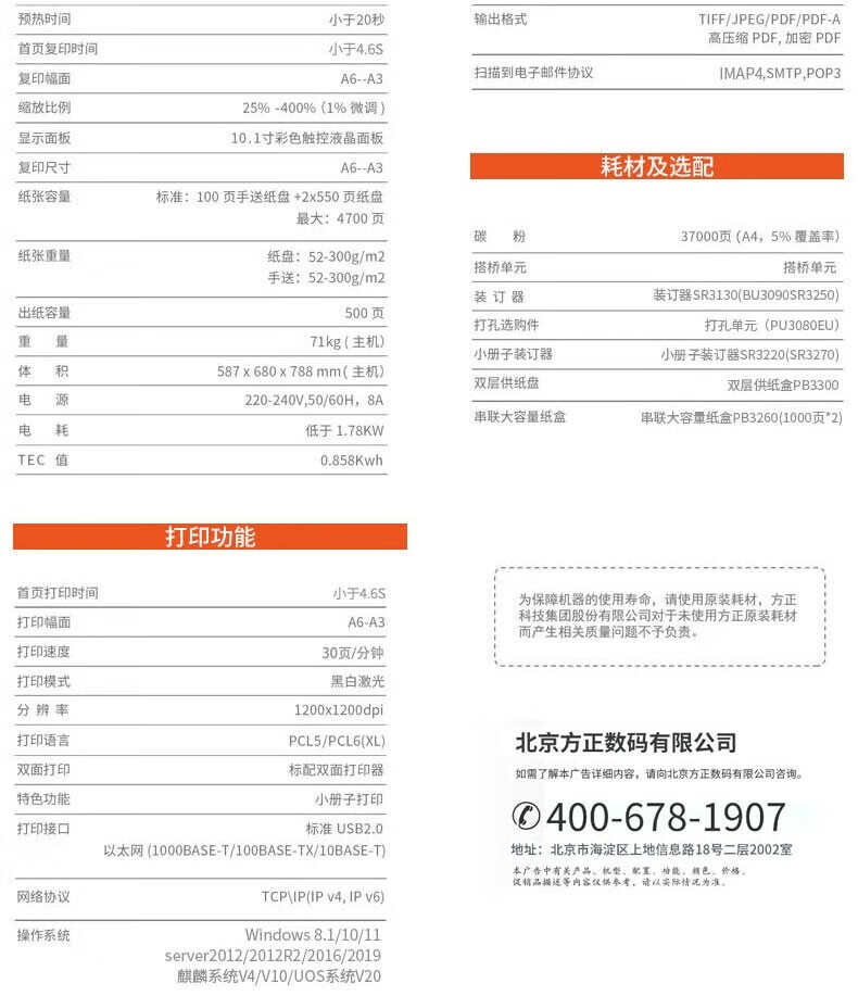 • 商品名稱:方正(Founder)復(fù)印機(jī) FR3230 SP(主機(jī)+內(nèi)置裝訂器+雙面輸稿器)