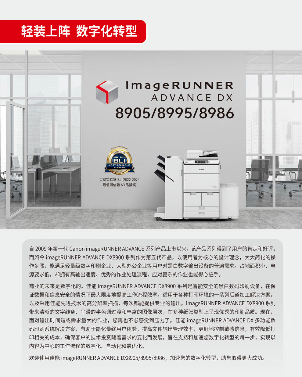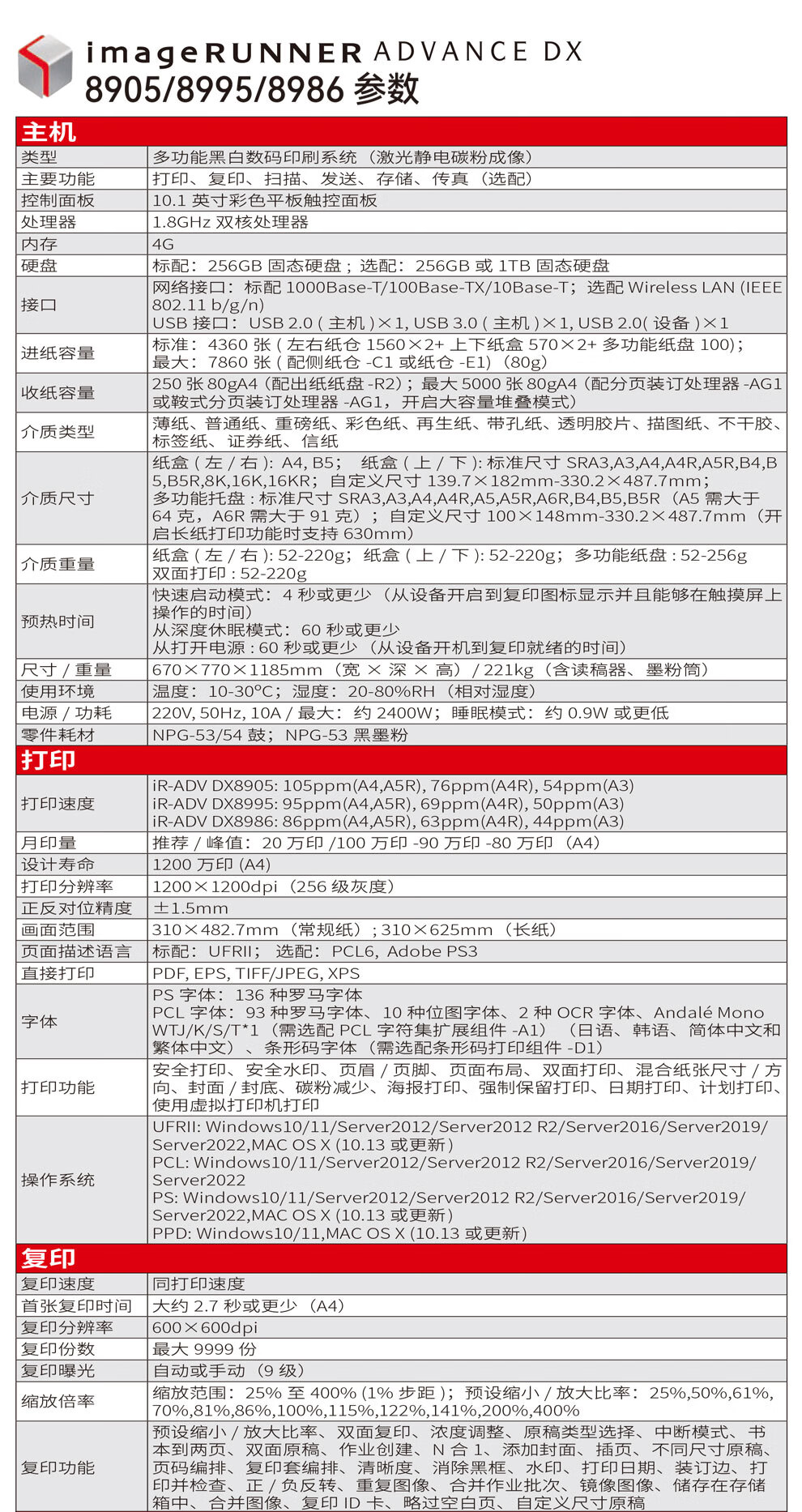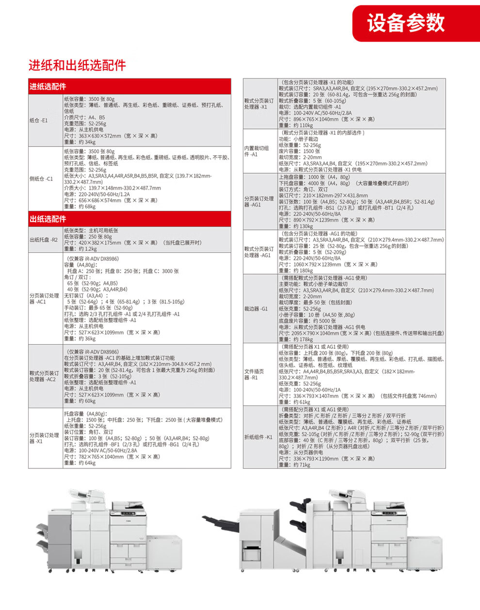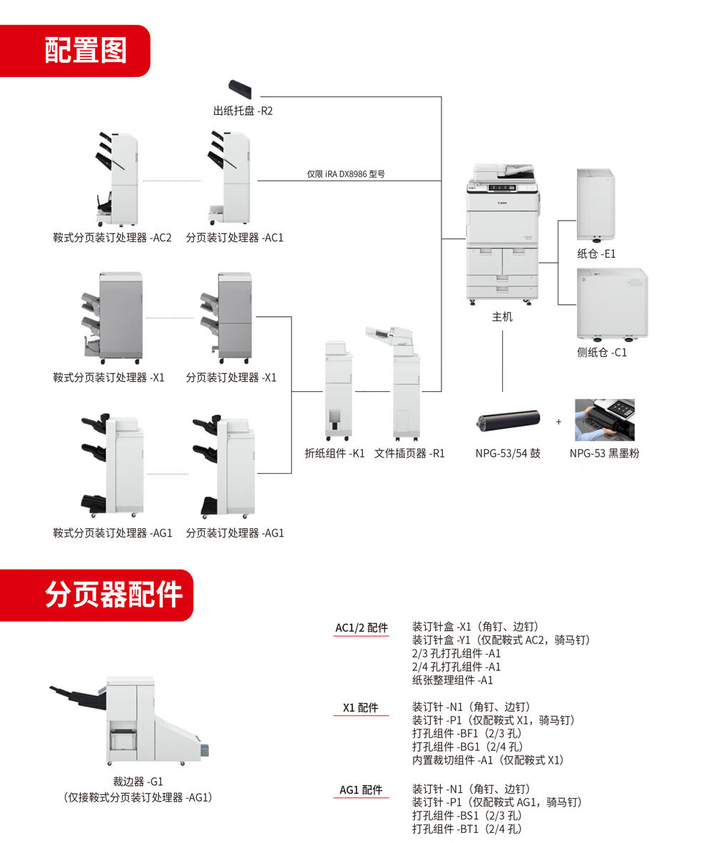 • 商品名稱:佳能(Canon)imageRUNNER ADVANCE DX 8986主機+鞍式分頁裝訂處理器AC2