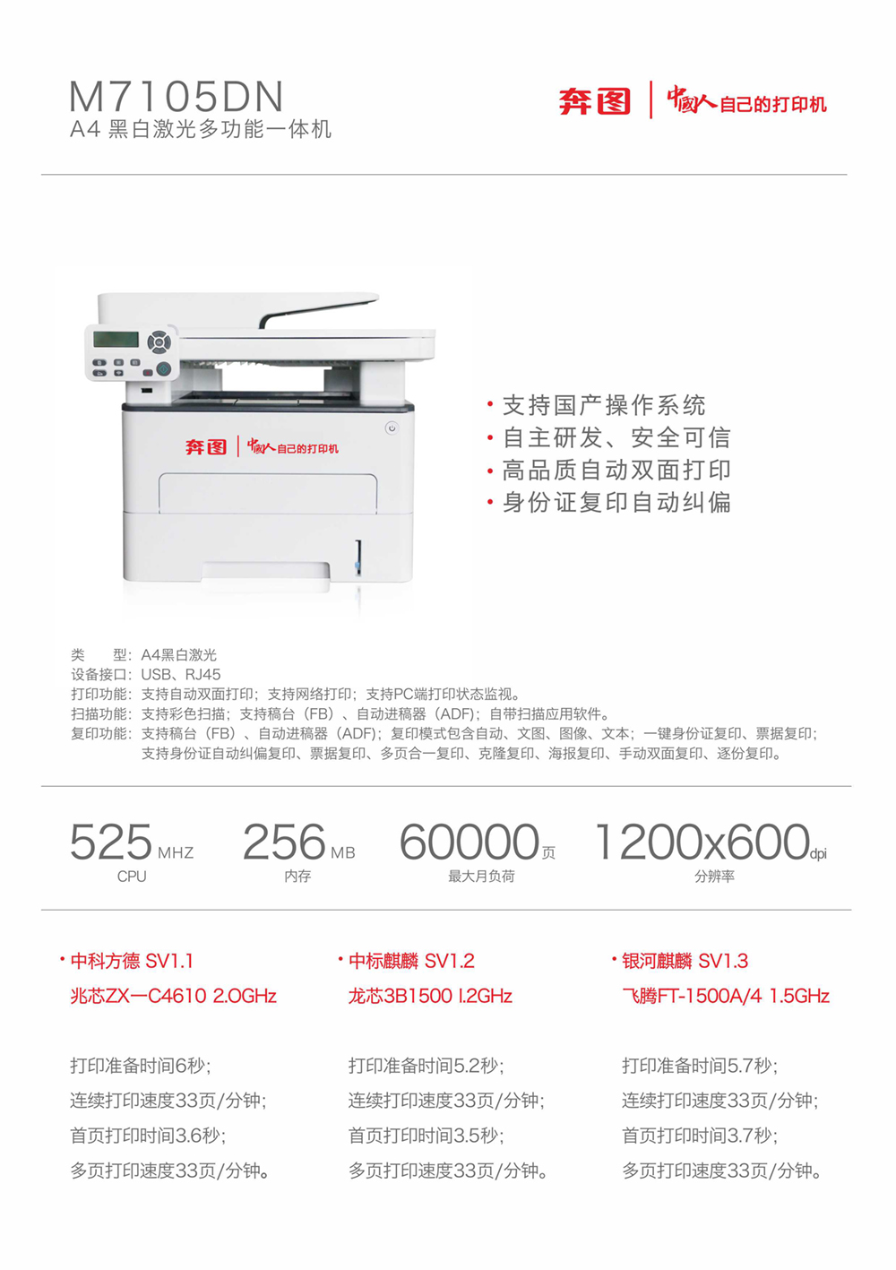 • 商品名稱:奔圖(PANTUM) M7105DN 黑白激光多功能一體機(jī)