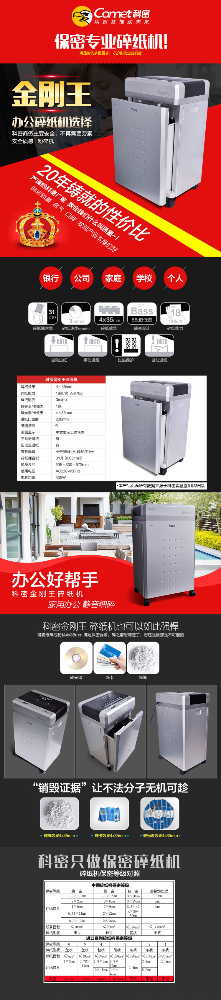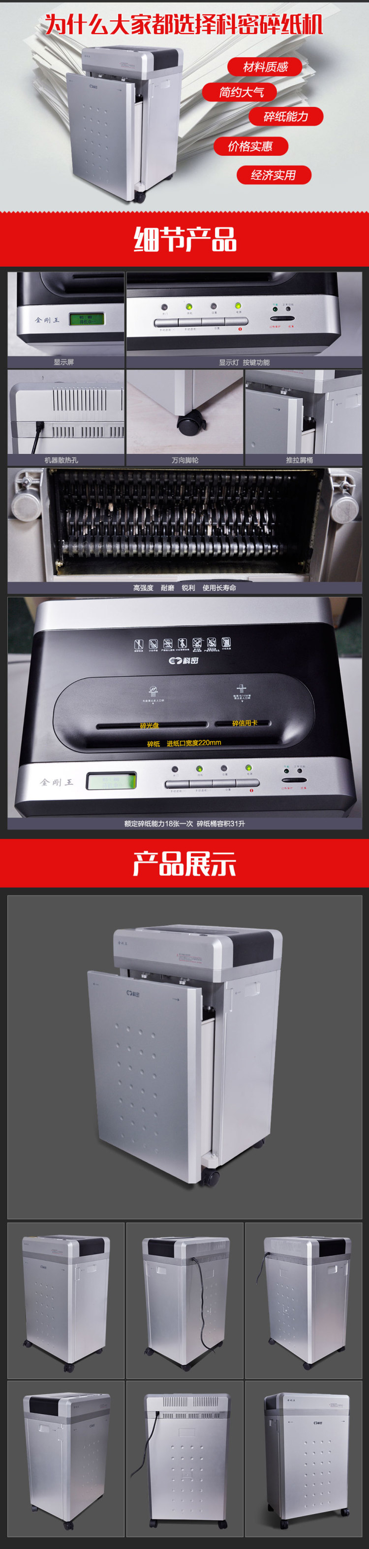 • 商品名稱:科密(Comet)金剛王 高速大容量辦公碎紙機(jī)(18張/31L碎卡光盤)