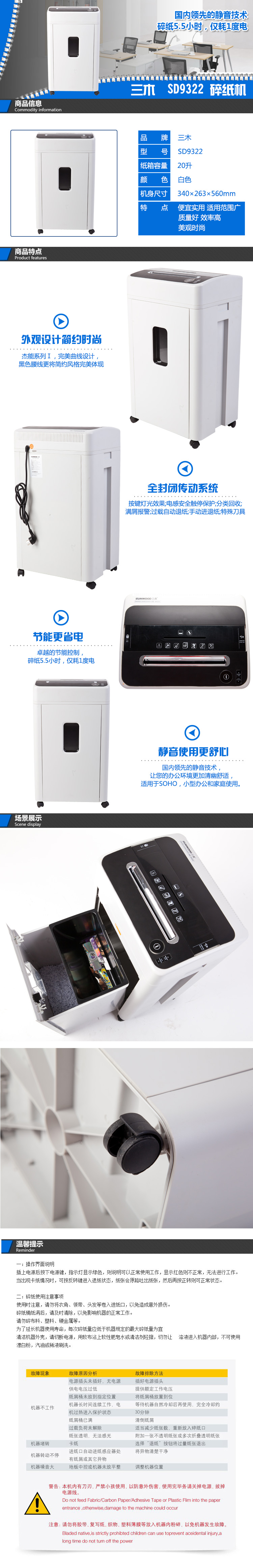 三木(SUNWOOD)錳鋼刀碎紙機SD9322