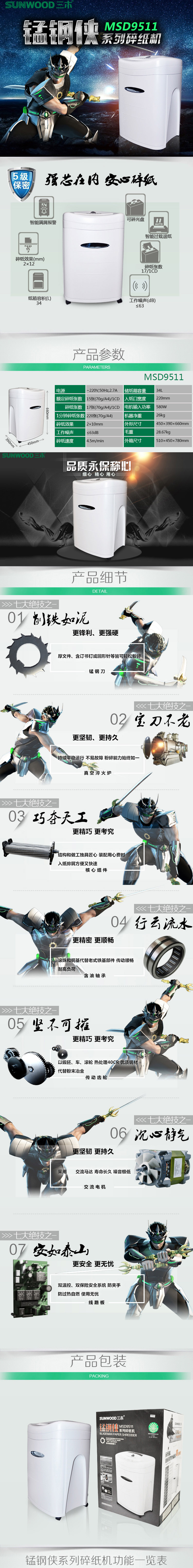 三木(SUNWOOD)錳鋼俠碎紙機(jī)MSD9511