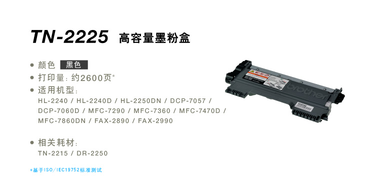 兄弟(brother)TN-2225黑色粉盒 適用于兄弟2240/7057/7060D/2990/ 2890/ 7360/7470D/7860