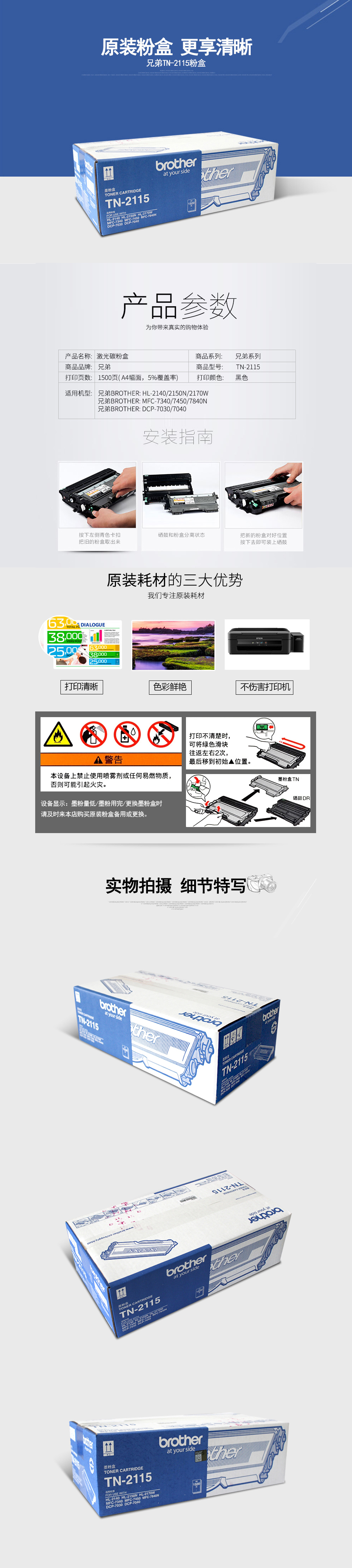 - 商品名稱:兄弟(brother)TN-2115粉盒 適用于兄弟2140/2150N/2170W/7030/ 7040/7340/7450/7840N機(jī)