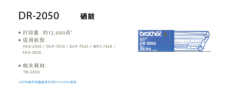 • 商品名稱:兄弟(brother)DR-2050硒鼓 適用于2040/2070N/2045/7010/7420/2820/2920/7025/7220