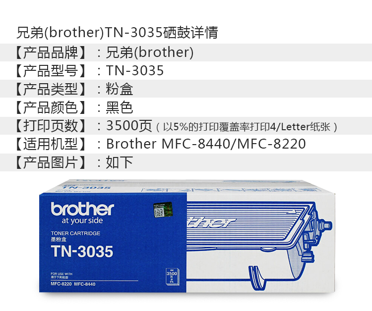 • 商品名稱:兄弟(brother)TN-3035粉盒 適用于兄弟8220/8440