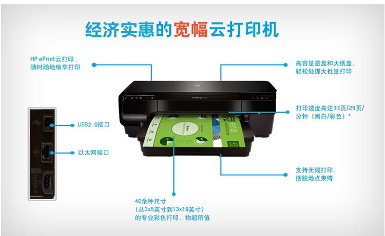 惠普(HP)Officejet 7110 Wide Format ePrinter A3噴墨打印機(jī)支持網(wǎng)絡(luò)打印