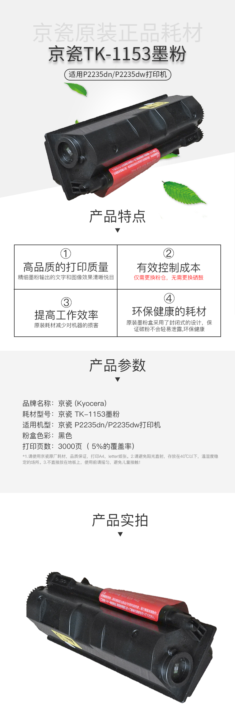 • 商品名稱:京瓷(KYOCERA)TK-1153墨粉盒 適用P2235dn/P2235dw打印機(jī)