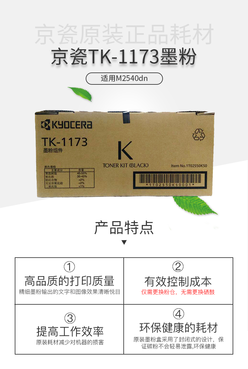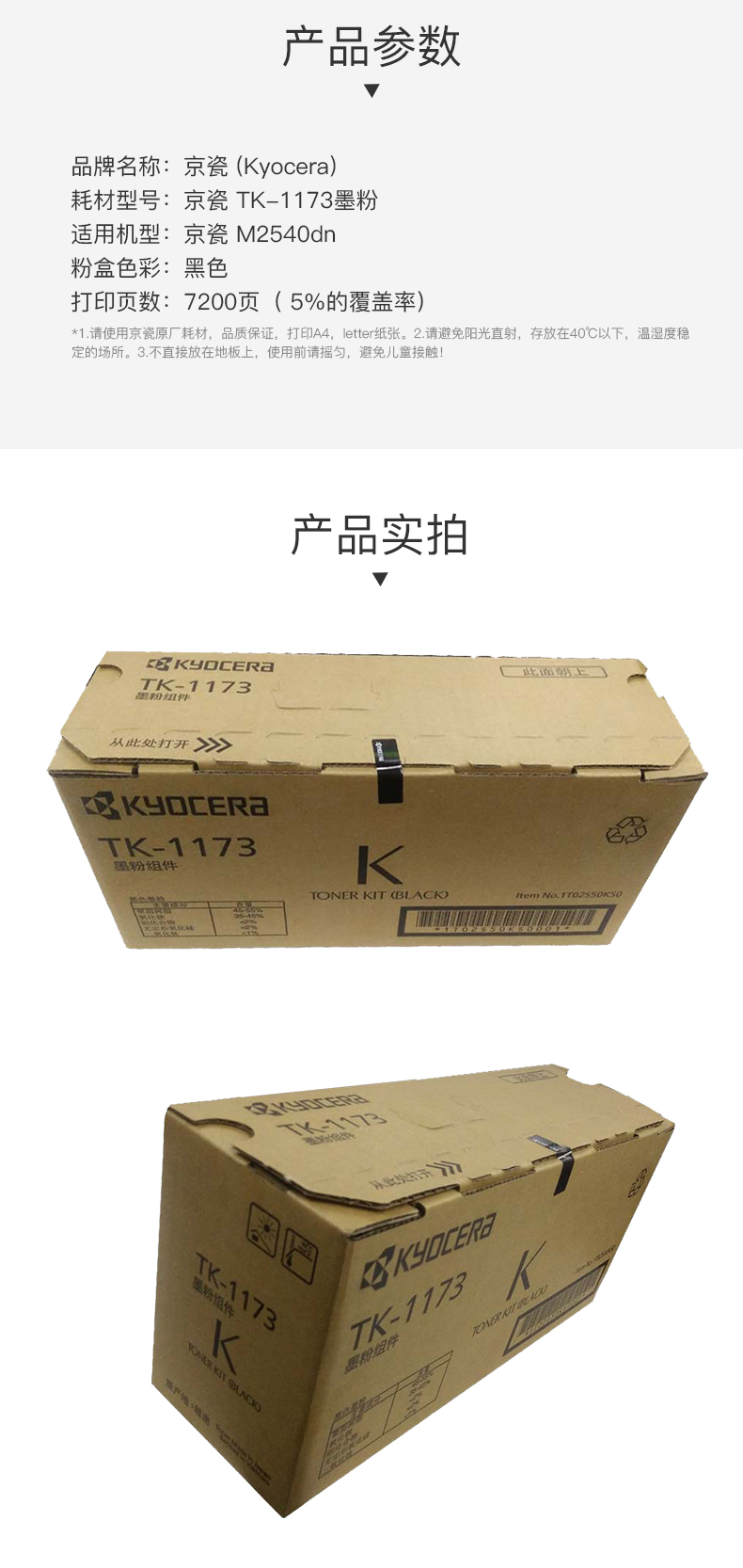 • 商品名稱:京瓷(KYOCERA)TK-1173墨粉盒 適用M2540dn一體機(jī)