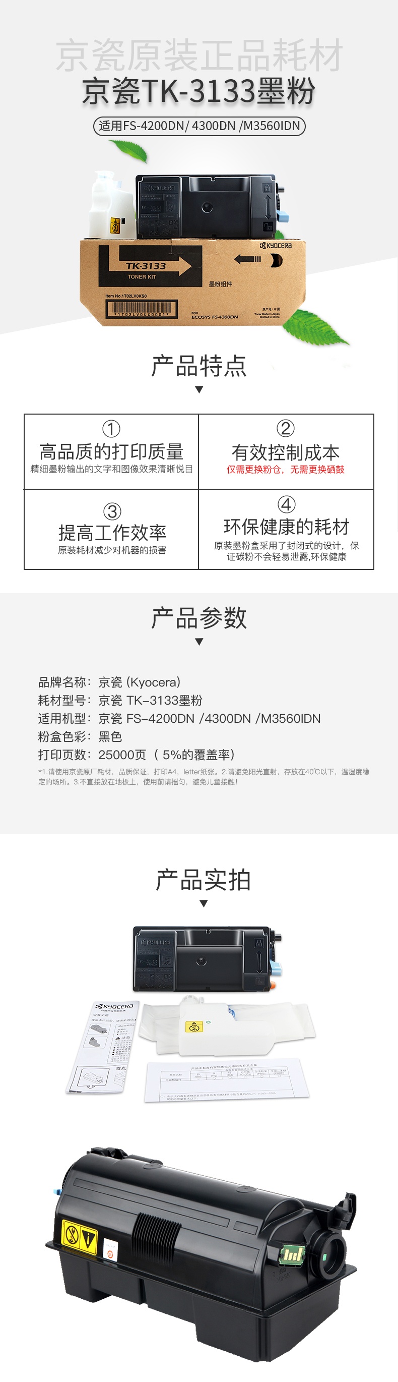 - 商品名稱:京瓷(KYOCERA)TK-3133墨粉盒 適用FS4200DN/4300DN/M3560IDN打印機(jī)