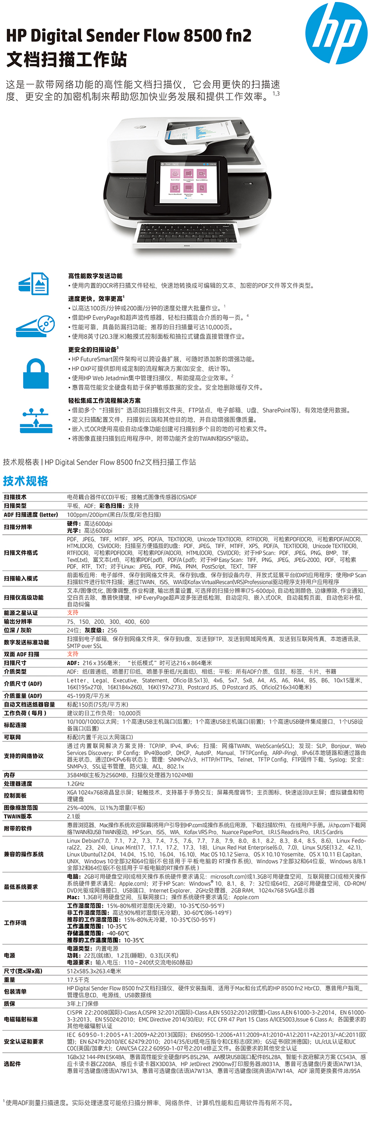 • 型號(hào):HP Scanjet Enterprise Flow 8500fn2