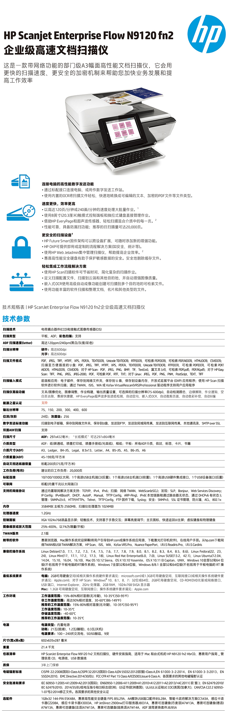 - 型號:HP Scanjet Enterprise Flow N9120fn2