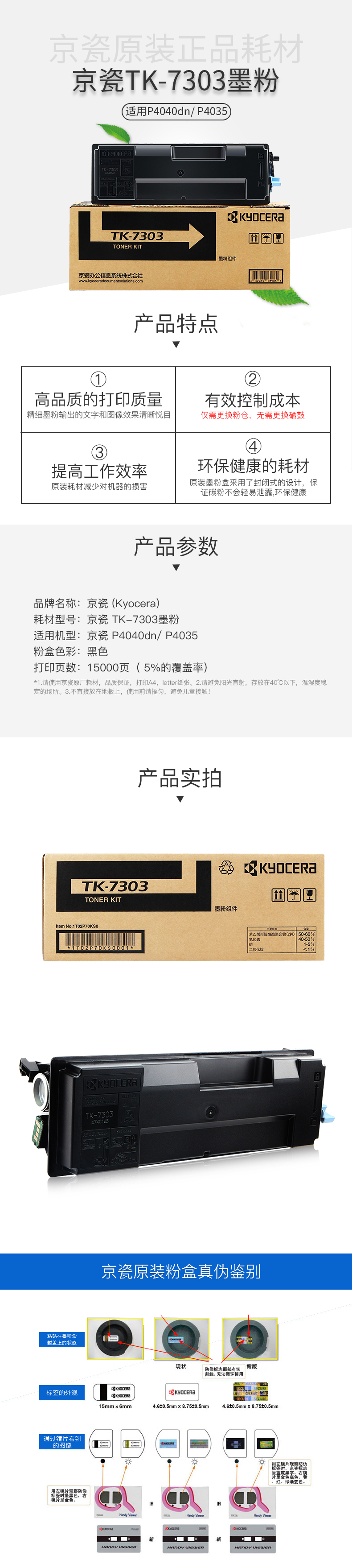 • 商品名稱:京瓷(KYOCERA)TK-7303墨粉盒 適用P4040dn/P4035打印機(jī)