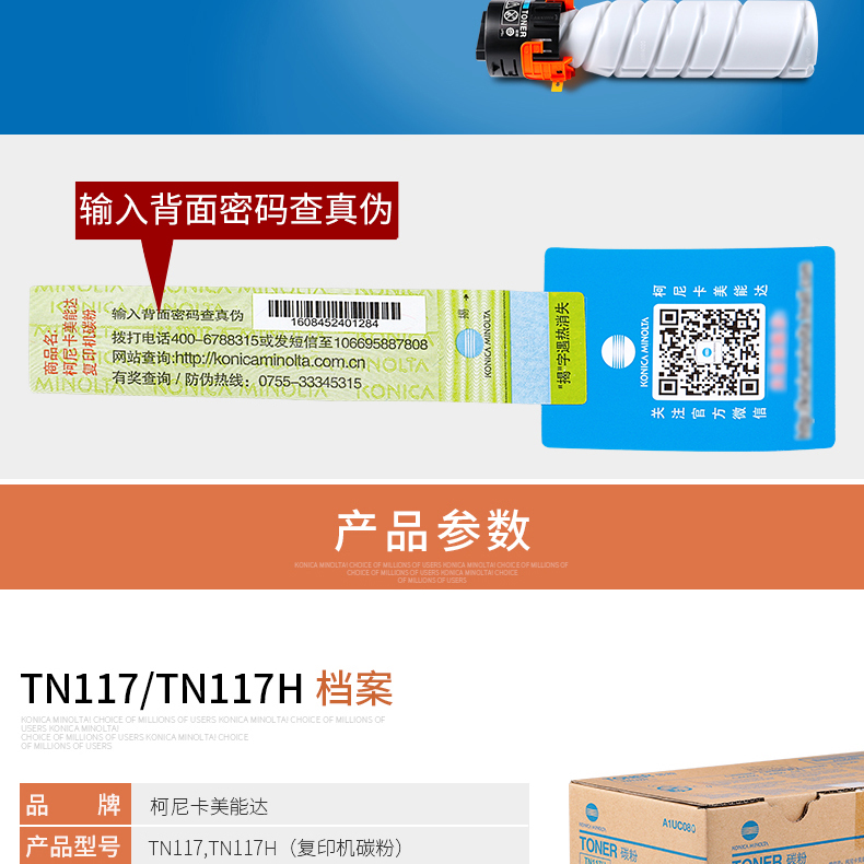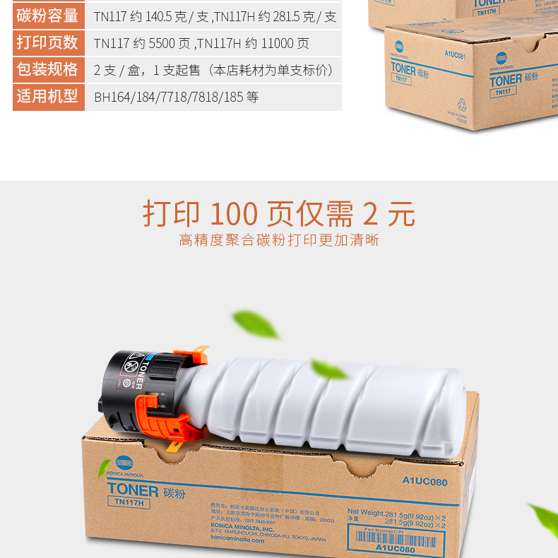 • 商品名稱:柯尼卡美能達(dá)(KONICA MINOLTA)TN117大容量碳粉適用于164/184/7718/185/7818