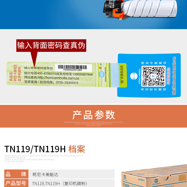• 商品名稱(chēng):柯尼卡美能達(dá)(KONICA MINOLTA)TN-119低容量碳粉適用于195/206/235/7719