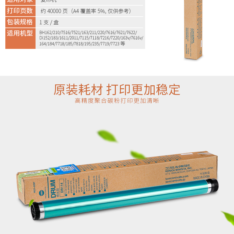 • 商品名稱:柯尼卡美能達(KONICA MINOLTA)DR-114硒鼓適用于162/163/184/185/235