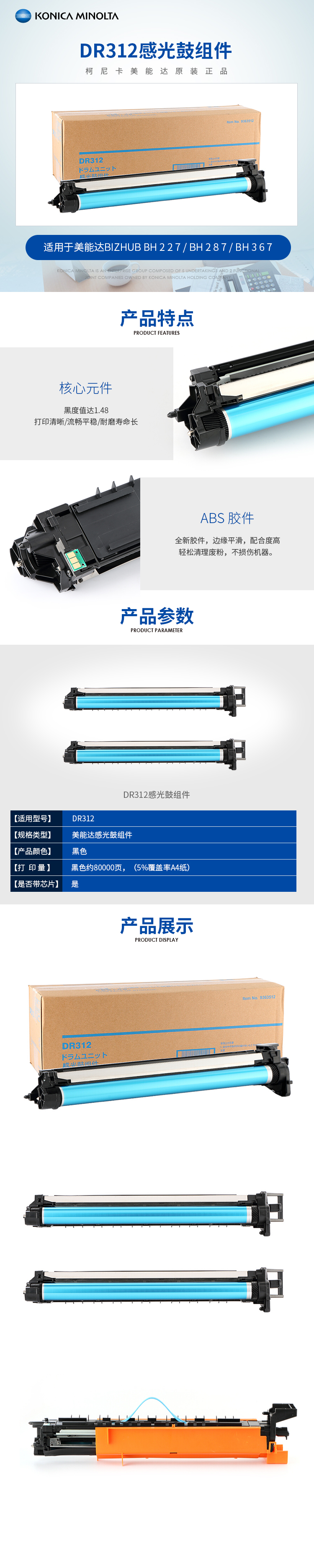 • 商品名稱:柯尼卡美能達(dá)(KONICA MINOLTA)DR312黑色感光鼓適用于BH227/287/367