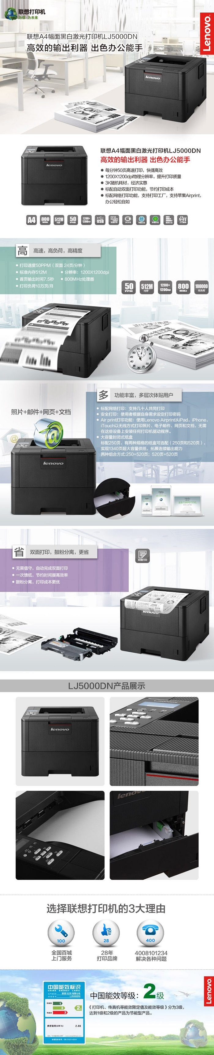 - 商品名稱:聯(lián)想(lenovo)A4黑白激光打印機LJ5000DN 支持有線網(wǎng)絡(luò)打印/自動雙面打印/50ppm/內(nèi)存512M