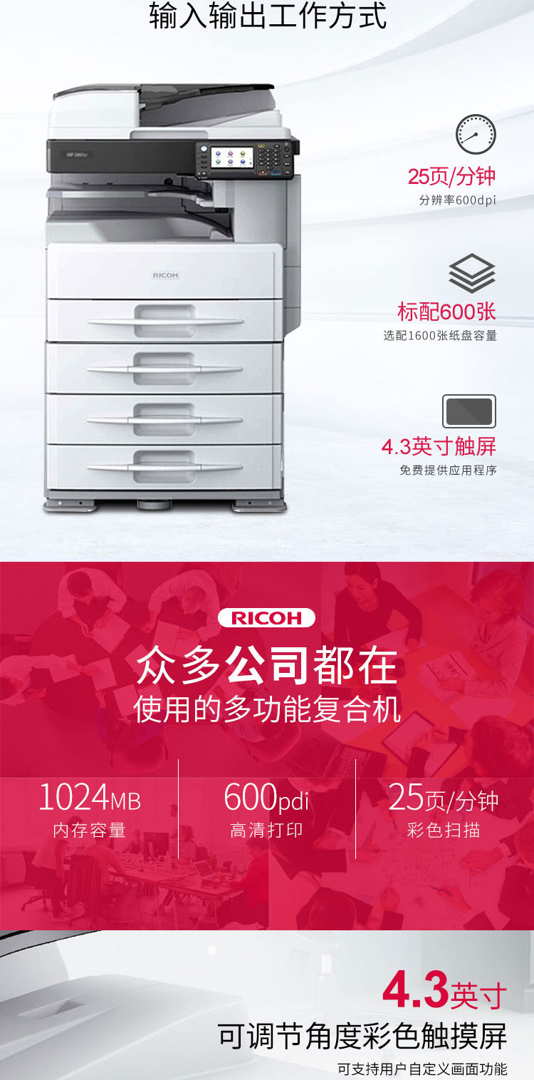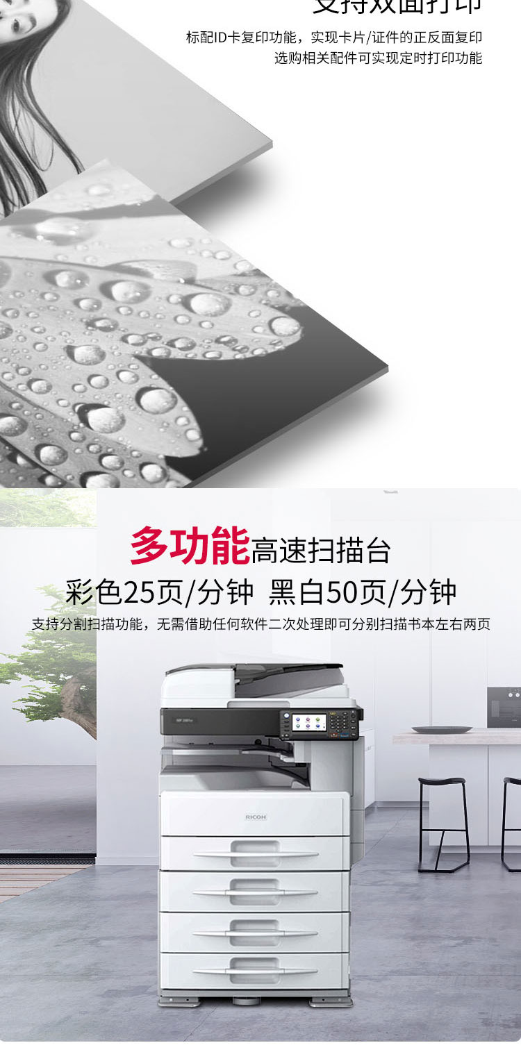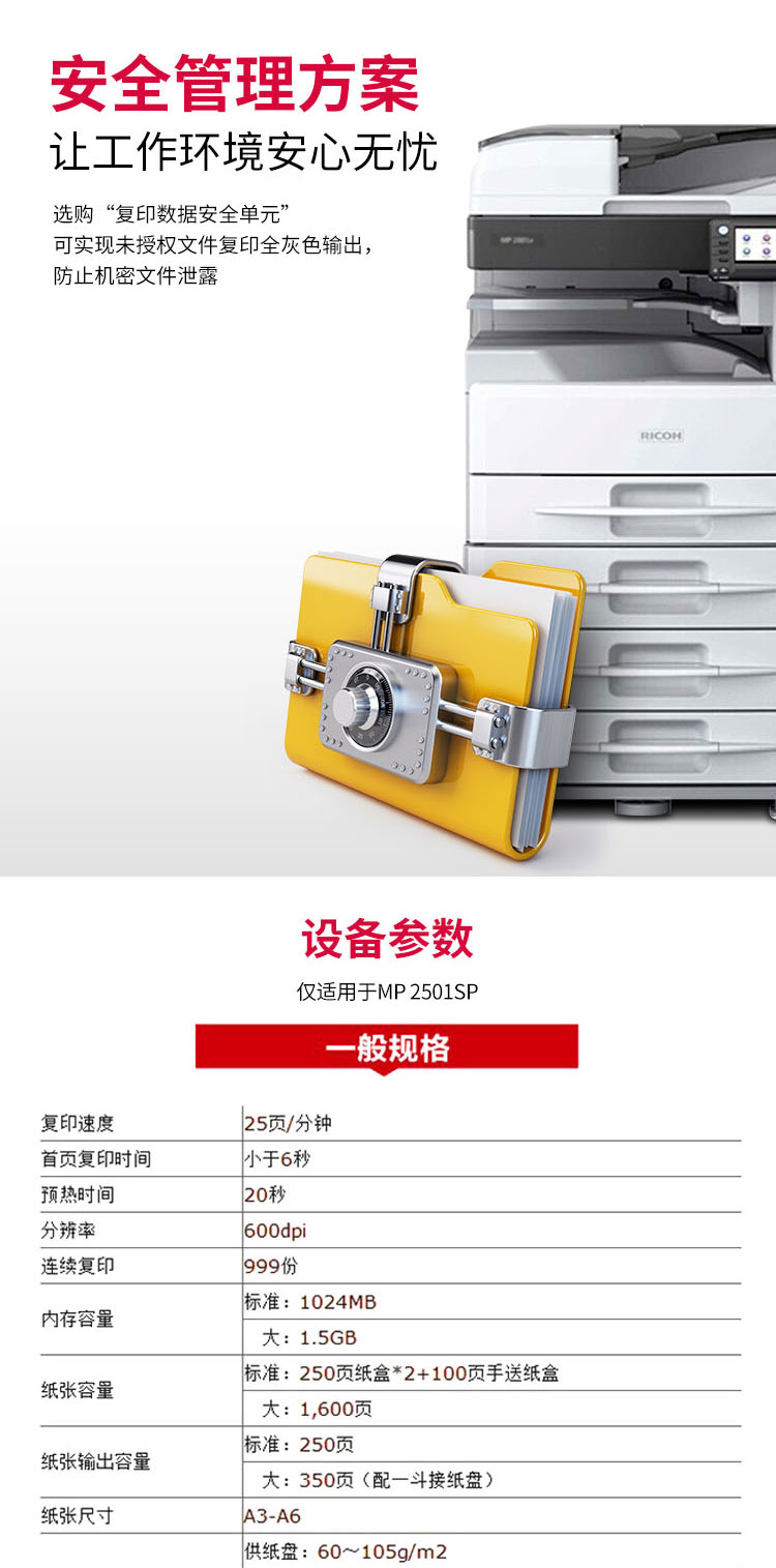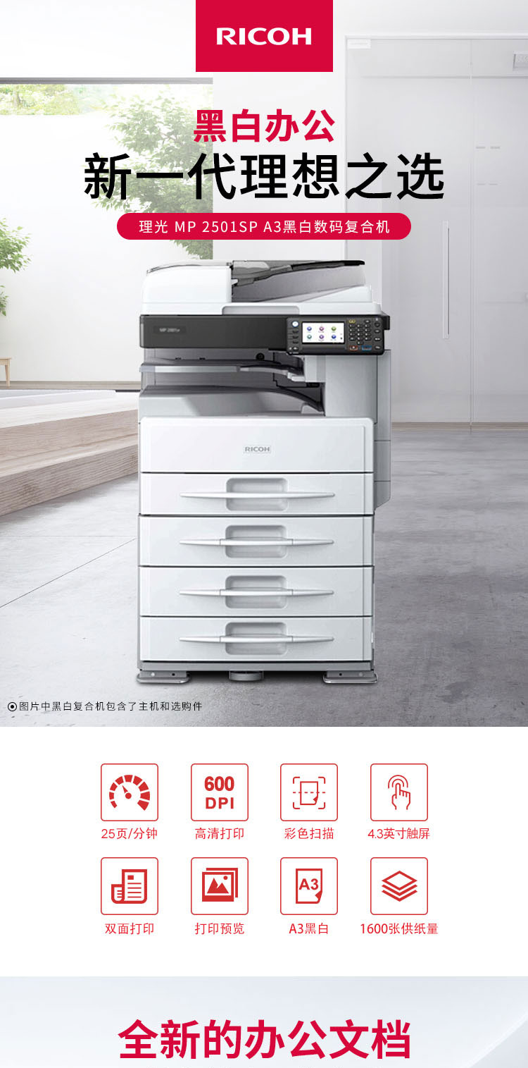 理光(RICOH) MP 2501SP 黑白激光復(fù)合機(jī) A3幅面 復(fù)印/打印/掃描/標(biāo)配兩紙盒/雙面送稿器/工作臺(tái) 白色 1年保修
