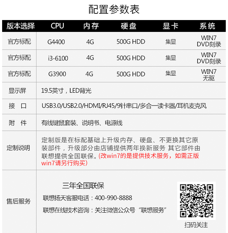 聯(lián)想(Lenovo)啟天A7400-D126 聯(lián)想一體機(jī)i5-7500/4G/1T/DVDRW/DOS/720P攝像頭/藍(lán)牙/19.5LCD