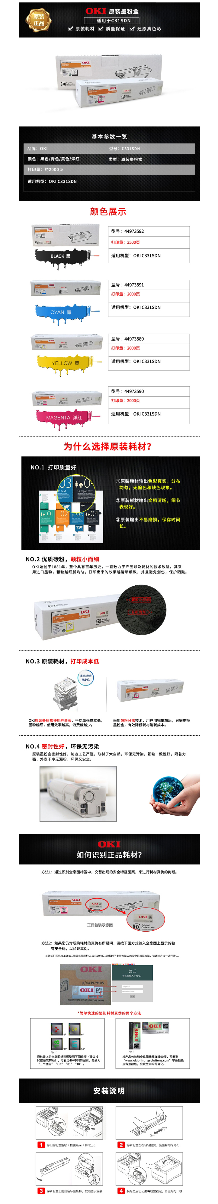 OKI黃色小容量墨粉盒44973589 適用于C331sdn