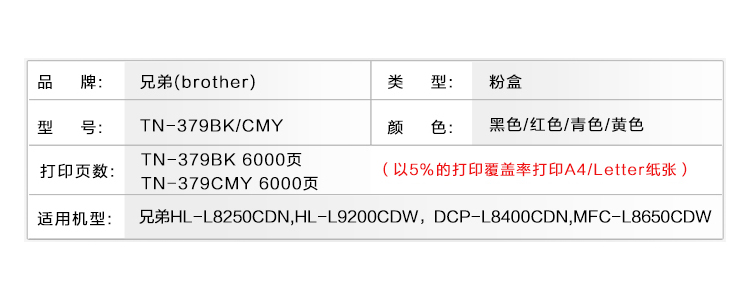 • 商品名稱:兄弟(brother)TN-379M粉盒 適用于兄弟8250CDN/9200CDW/8400CDN/8650CDW