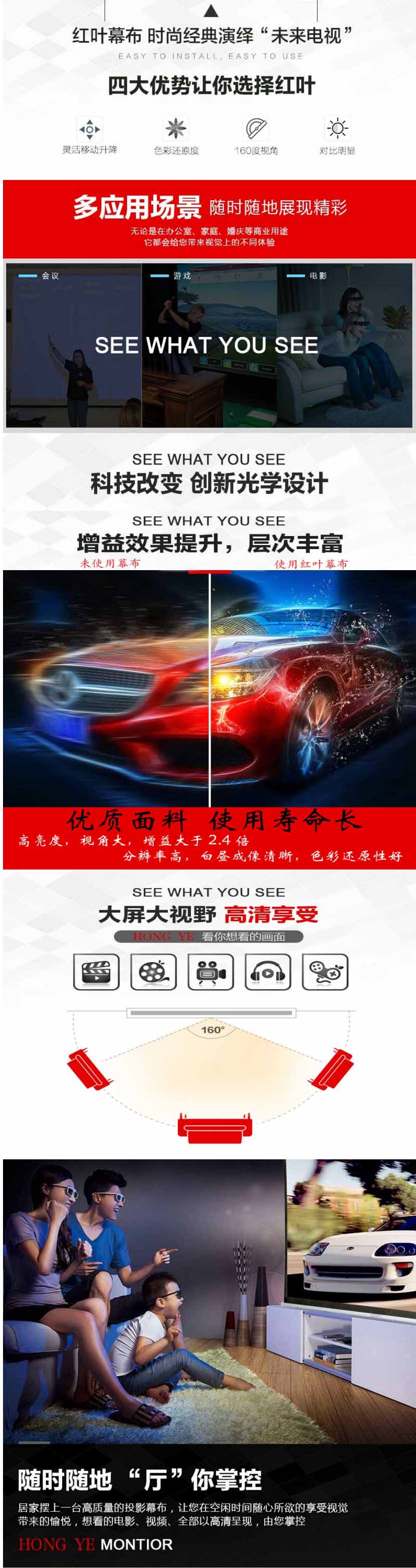 紅葉(HONG YE)150英寸 16:9電動(dòng)投影幕布