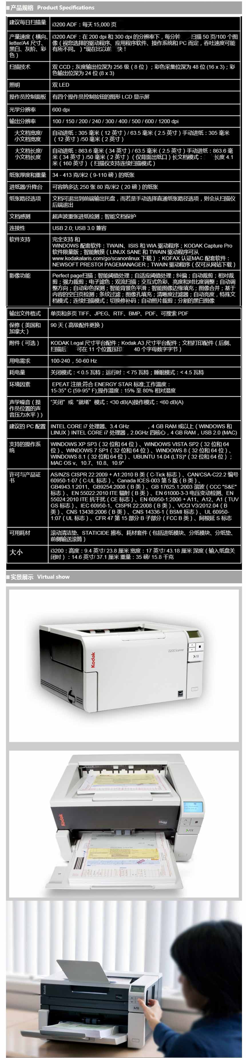 • 商品名稱(chēng):柯達(dá)(Kodak) i3200 高速掃描儀A3饋紙式