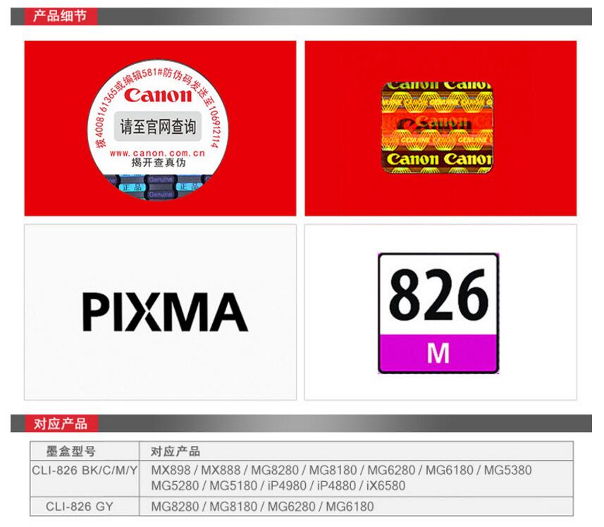 • 商品名稱(chēng):佳能(Canon)CLI-826M 紅色墨盒(適用MX898、MG6280、iP4980、iX6580)