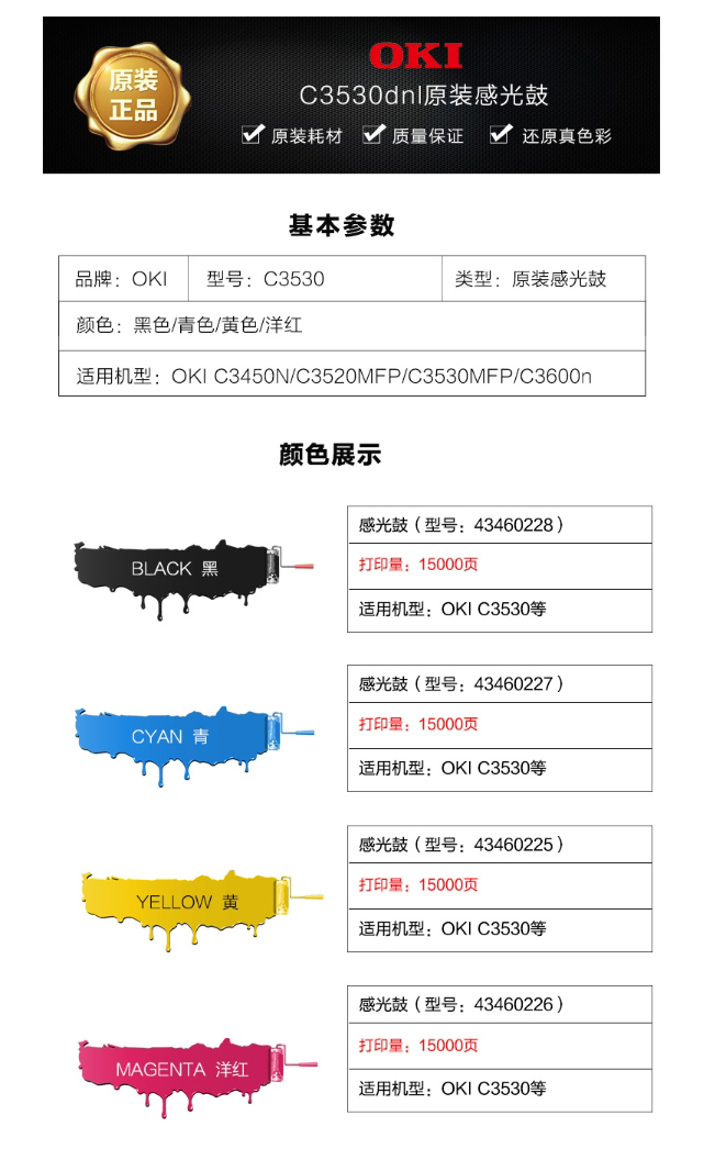 • 商品名稱(chēng):OKI青色感光鼓43460227 適用于C3530MFP