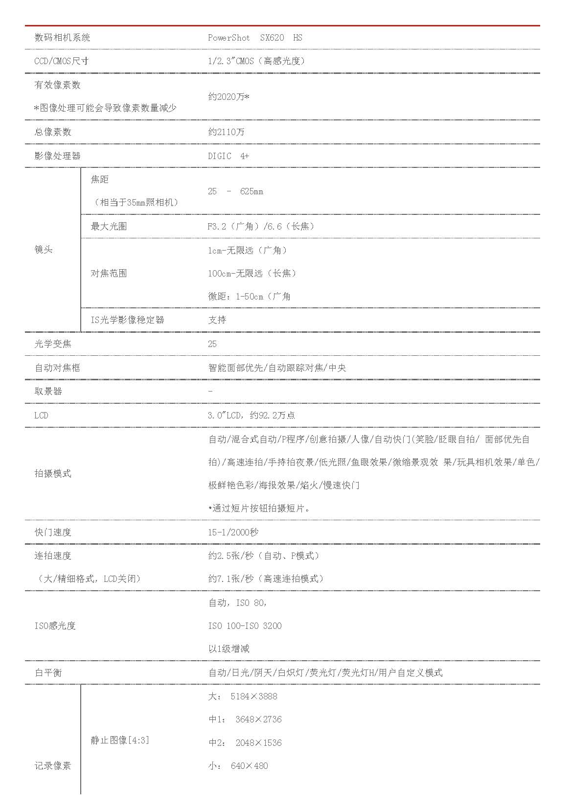 • 規(guī)格:PowerShot SX620 HS數(shù)碼相機