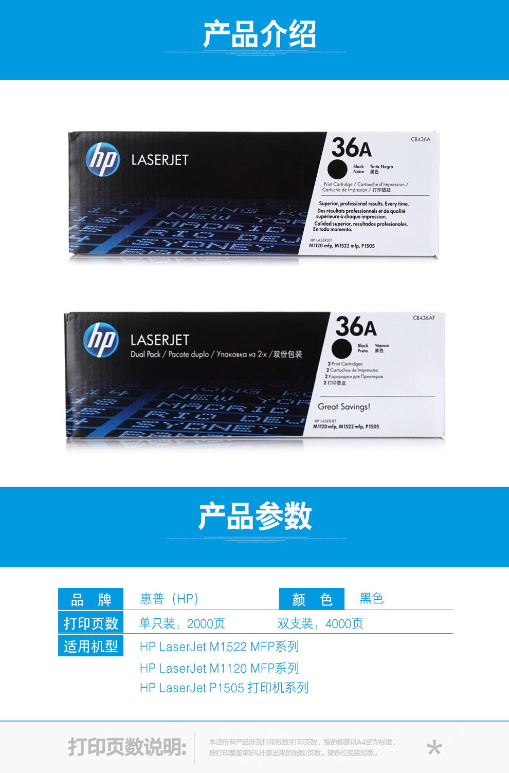 • 商品名稱:惠普(HP) CB436A 36A黑色硒鼓 適用于HP P1505/n/M1120/n/M1522n/nf