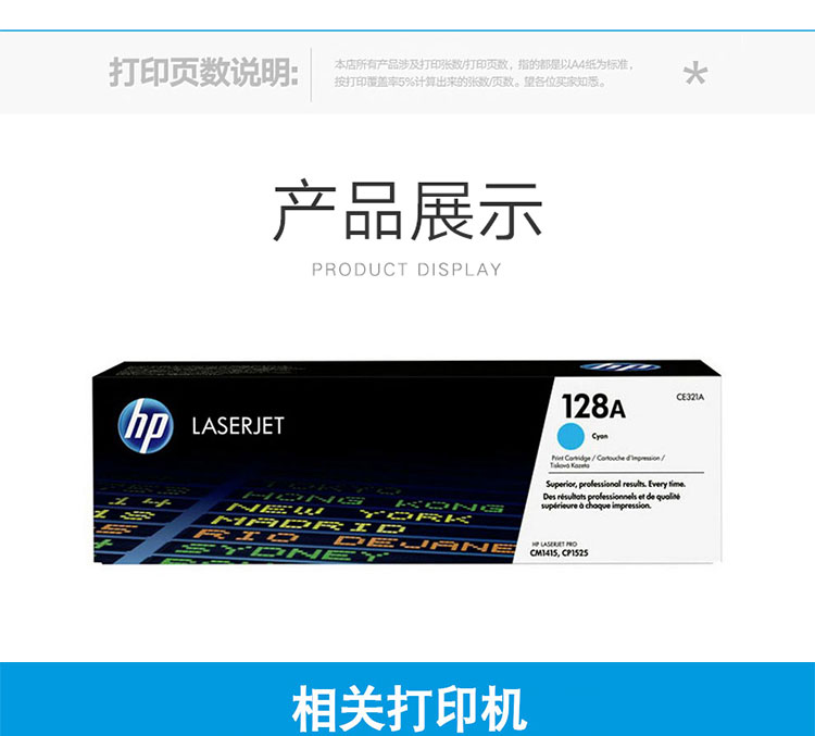 惠普(HP)128A 青色硒鼓CE321A 打印量1,300頁 適用于HP Color LaserJet CP1525n HP LaserJet Pro CM1415 系列