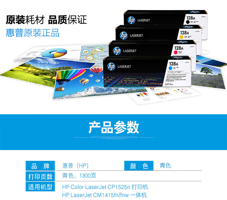 • 商品名稱:惠普(HP)128A 青色硒鼓CE321A 打印量1,300頁 適用于HP Color LaserJet CP1525n HP LaserJet Pro CM1415 系列