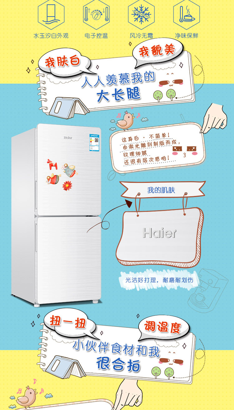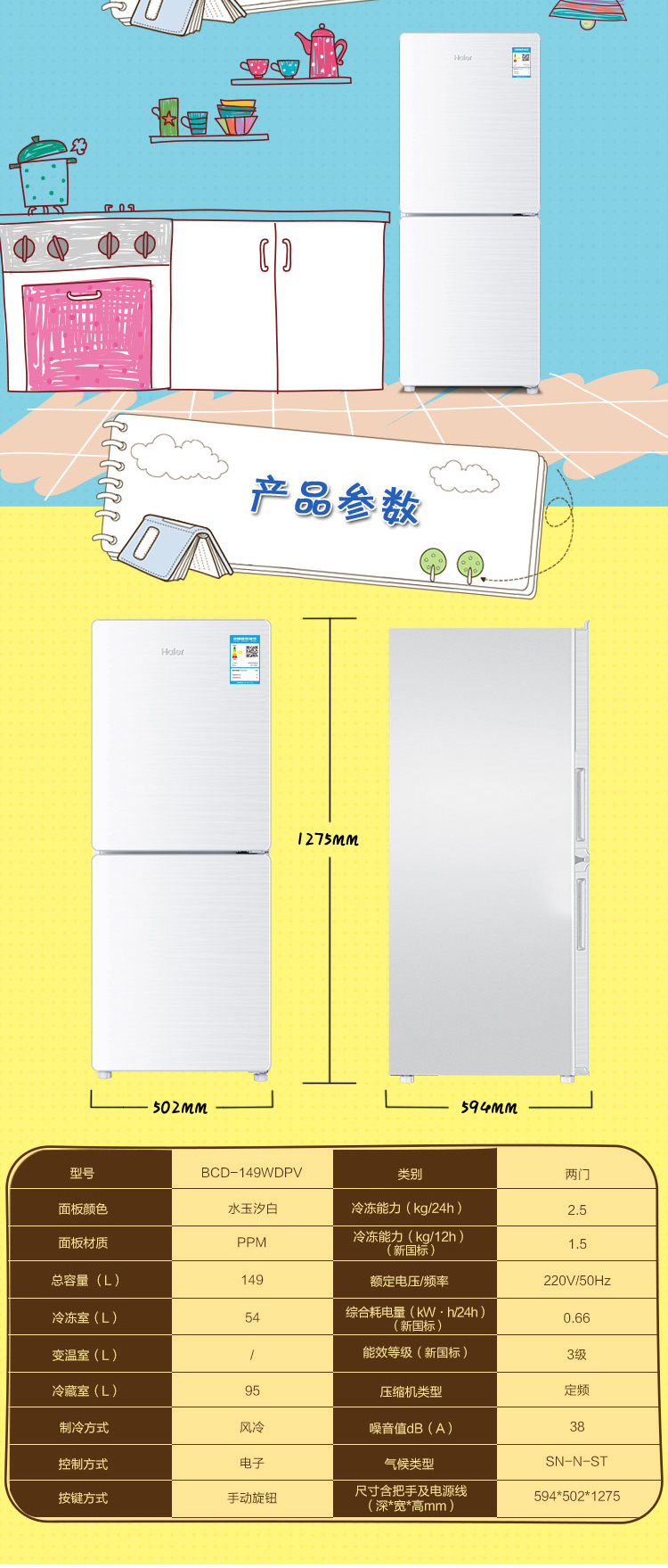 • 商品名稱:海爾(Haier)149升 BCD-149WDPV小型兩門冰箱 風冷無霜 制冷速度快 制冷均勻 凈味保鮮